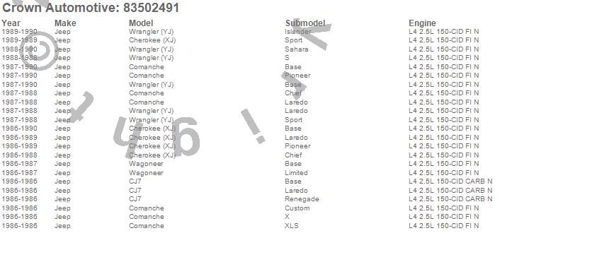 Crown Automotive is the premier manufacturer and distributor of quality replacement parts for Jeep® CJ™, Wrangler™, Cherokee™, Grand Cherokee™, Liberty™, and Commander™."From humble beginnings in 1963 in a small Boston storefront, Crown Automotive has consistently maintained its commitment to offering only quality parts and exceptional service. Today, with warehouses in Massachusetts, Georgia, Nevada, Spain, and the Czech Republic, totaling over 160,000 square feet, Crown Automotive continues to be the leader in quality replacement parts for Jeep® vehicles. With over 8,000 different parts in stock for Jeep® vehicles from 1942 on up, Crown has the largest stock of replacement parts for Jeep® vehicles, including factory-discontinued parts. In fact, many of the older Jeeps are still on (and off) the road thanks to Crown parts. The Crown line consists of axle, body, brake, clutch, cooling, driveline, electrical, engine, exhaust, fuel, steering, suspension, transmission and transfer case components. Crown Automotive also offers an exclusive line of component kits and accessory products. Because we know that Jeeps are driven harder than most other vehicles, we emphasize offering only quality parts. In fact, we test parts on Jeeps before distributing them to our dealers to insure that they meet our standards for quality. Crown also supports its entire line with a 12 month/12,000 mile warranty to insure our dealers and their customers of our commitment to offering quality parts. We know from experience that Jeep® owners would rather pay a little more for a good quality part that's backed by a strong guarantee. But we know that price is important as well. So, not only will you find Crown parts to be of exceptional quality, but you'll find them at a great price too.