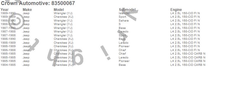 Crown Automotive is the premier manufacturer and distributor of quality replacement parts for Jeep® CJ™, Wrangler™, Cherokee™, Grand Cherokee™, Liberty™, and Commander™."From humble beginnings in 1963 in a small Boston storefront, Crown Automotive has consistently maintained its commitment to offering only quality parts and exceptional service. Today, with warehouses in Massachusetts, Georgia, Nevada, Spain, and the Czech Republic, totaling over 160,000 square feet, Crown Automotive continues to be the leader in quality replacement parts for Jeep® vehicles. With over 8,000 different parts in stock for Jeep® vehicles from 1942 on up, Crown has the largest stock of replacement parts for Jeep® vehicles, including factory-discontinued parts. In fact, many of the older Jeeps are still on (and off) the road thanks to Crown parts. The Crown line consists of axle, body, brake, clutch, cooling, driveline, electrical, engine, exhaust, fuel, steering, suspension, transmission and transfer case components. Crown Automotive also offers an exclusive line of component kits and accessory products. Because we know that Jeeps are driven harder than most other vehicles, we emphasize offering only quality parts. In fact, we test parts on Jeeps before distributing them to our dealers to insure that they meet our standards for quality. Crown also supports its entire line with a 12 month/12,000 mile warranty to insure our dealers and their customers of our commitment to offering quality parts. We know from experience that Jeep® owners would rather pay a little more for a good quality part that's backed by a strong guarantee. But we know that price is important as well. So, not only will you find Crown parts to be of exceptional quality, but you'll find them at a great price too.