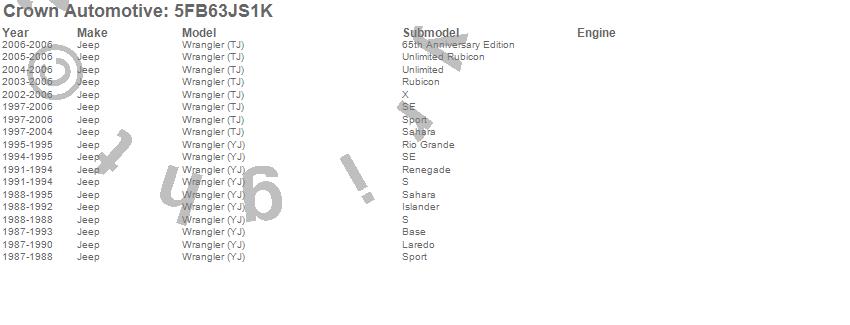 Crown Automotive is the premier manufacturer and distributor of quality replacement parts for Jeep® CJ™, Wrangler™, Cherokee™, Grand Cherokee™, Liberty™, and Commander™."From humble beginnings in 1963 in a small Boston storefront, Crown Automotive has consistently maintained its commitment to offering only quality parts and exceptional service. Today, with warehouses in Massachusetts, Georgia, Nevada, Spain, and the Czech Republic, totaling over 160,000 square feet, Crown Automotive continues to be the leader in quality replacement parts for Jeep® vehicles. With over 8,000 different parts in stock for Jeep® vehicles from 1942 on up, Crown has the largest stock of replacement parts for Jeep® vehicles, including factory-discontinued parts. In fact, many of the older Jeeps are still on (and off) the road thanks to Crown parts. The Crown line consists of axle, body, brake, clutch, cooling, driveline, electrical, engine, exhaust, fuel, steering, suspension, transmission and transfer case components. Crown Automotive also offers an exclusive line of component kits and accessory products. Because we know that Jeeps are driven harder than most other vehicles, we emphasize offering only quality parts. In fact, we test parts on Jeeps before distributing them to our dealers to insure that they meet our standards for quality. Crown also supports its entire line with a 12 month/12,000 mile warranty to insure our dealers and their customers of our commitment to offering quality parts. We know from experience that Jeep® owners would rather pay a little more for a good quality part that's backed by a strong guarantee. But we know that price is important as well. So, not only will you find Crown parts to be of exceptional quality, but you'll find them at a great price too.