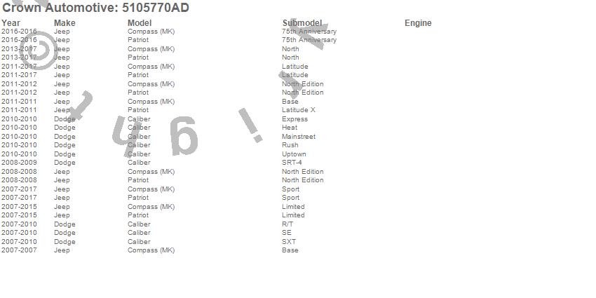Crown Automotive is the premier manufacturer and distributor of quality replacement parts for Jeep® CJ™, Wrangler™, Cherokee™, Grand Cherokee™, Liberty™, and Commander™."From humble beginnings in 1963 in a small Boston storefront, Crown Automotive has consistently maintained its commitment to offering only quality parts and exceptional service. Today, with warehouses in Massachusetts, Georgia, Nevada, Spain, and the Czech Republic, totaling over 160,000 square feet, Crown Automotive continues to be the leader in quality replacement parts for Jeep® vehicles. With over 8,000 different parts in stock for Jeep® vehicles from 1942 on up, Crown has the largest stock of replacement parts for Jeep® vehicles, including factory-discontinued parts. In fact, many of the older Jeeps are still on (and off) the road thanks to Crown parts. The Crown line consists of axle, body, brake, clutch, cooling, driveline, electrical, engine, exhaust, fuel, steering, suspension, transmission and transfer case components. Crown Automotive also offers an exclusive line of component kits and accessory products. Because we know that Jeeps are driven harder than most other vehicles, we emphasize offering only quality parts. In fact, we test parts on Jeeps before distributing them to our dealers to insure that they meet our standards for quality. Crown also supports its entire line with a 12 month/12,000 mile warranty to insure our dealers and their customers of our commitment to offering quality parts. We know from experience that Jeep® owners would rather pay a little more for a good quality part that's backed by a strong guarantee. But we know that price is important as well. So, not only will you find Crown parts to be of exceptional quality, but you'll find them at a great price too.