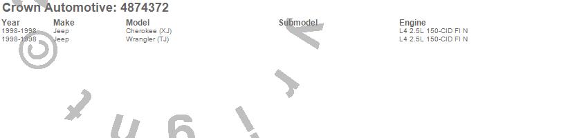 Crown Automotive is the premier manufacturer and distributor of quality replacement parts for Jeep® CJ™, Wrangler™, Cherokee™, Grand Cherokee™, Liberty™, and Commander™."From humble beginnings in 1963 in a small Boston storefront, Crown Automotive has consistently maintained its commitment to offering only quality parts and exceptional service. Today, with warehouses in Massachusetts, Georgia, Nevada, Spain, and the Czech Republic, totaling over 160,000 square feet, Crown Automotive continues to be the leader in quality replacement parts for Jeep® vehicles. With over 8,000 different parts in stock for Jeep® vehicles from 1942 on up, Crown has the largest stock of replacement parts for Jeep® vehicles, including factory-discontinued parts. In fact, many of the older Jeeps are still on (and off) the road thanks to Crown parts. The Crown line consists of axle, body, brake, clutch, cooling, driveline, electrical, engine, exhaust, fuel, steering, suspension, transmission and transfer case components. Crown Automotive also offers an exclusive line of component kits and accessory products. Because we know that Jeeps are driven harder than most other vehicles, we emphasize offering only quality parts. In fact, we test parts on Jeeps before distributing them to our dealers to insure that they meet our standards for quality. Crown also supports its entire line with a 12 month/12,000 mile warranty to insure our dealers and their customers of our commitment to offering quality parts. We know from experience that Jeep® owners would rather pay a little more for a good quality part that's backed by a strong guarantee. But we know that price is important as well. So, not only will you find Crown parts to be of exceptional quality, but you'll find them at a great price too.