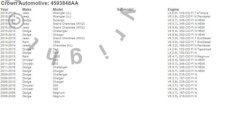 1500, 300, Challenger, Charger, Cherokee (KL), Dart, Durango, Grand Cherokee (WK2), Magnum, Chrysler, Dodge, Jeep, Ram, 2016, 2015, 2014, 2013, 2012, 2011, 2010 more…