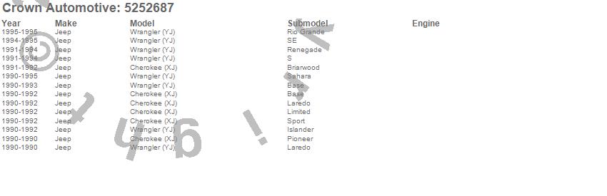 Crown Automotive is the premier manufacturer and distributor of quality replacement parts for Jeep® CJ™, Wrangler™, Cherokee™, Grand Cherokee™, Liberty™, and Commander™."From humble beginnings in 1963 in a small Boston storefront, Crown Automotive has consistently maintained its commitment to offering only quality parts and exceptional service. Today, with warehouses in Massachusetts, Georgia, Nevada, Spain, and the Czech Republic, totaling over 160,000 square feet, Crown Automotive continues to be the leader in quality replacement parts for Jeep® vehicles. With over 8,000 different parts in stock for Jeep® vehicles from 1942 on up, Crown has the largest stock of replacement parts for Jeep® vehicles, including factory-discontinued parts. In fact, many of the older Jeeps are still on (and off) the road thanks to Crown parts. The Crown line consists of axle, body, brake, clutch, cooling, driveline, electrical, engine, exhaust, fuel, steering, suspension, transmission and transfer case components. Crown Automotive also offers an exclusive line of component kits and accessory products. Because we know that Jeeps are driven harder than most other vehicles, we emphasize offering only quality parts. In fact, we test parts on Jeeps before distributing them to our dealers to insure that they meet our standards for quality. Crown also supports its entire line with a 12 month/12,000 mile warranty to insure our dealers and their customers of our commitment to offering quality parts. We know from experience that Jeep® owners would rather pay a little more for a good quality part that's backed by a strong guarantee. But we know that price is important as well. So, not only will you find Crown parts to be of exceptional quality, but you'll find them at a great price too.