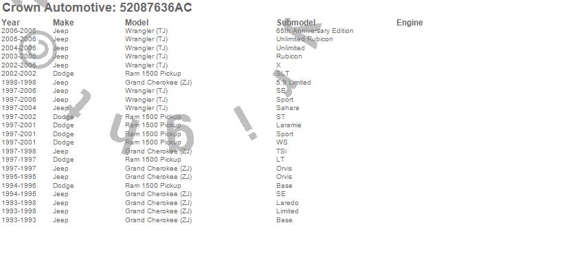 Grand Cherokee (ZJ), Ram 1500, Wrangler (LJ), Wrangler (TJ), Dodge, Jeep, 2006, 2005, 2004, 2003, 2002, 2001, 2000, 1999, 1998, 1997, 1996, 1995, 1994, 1993 more…