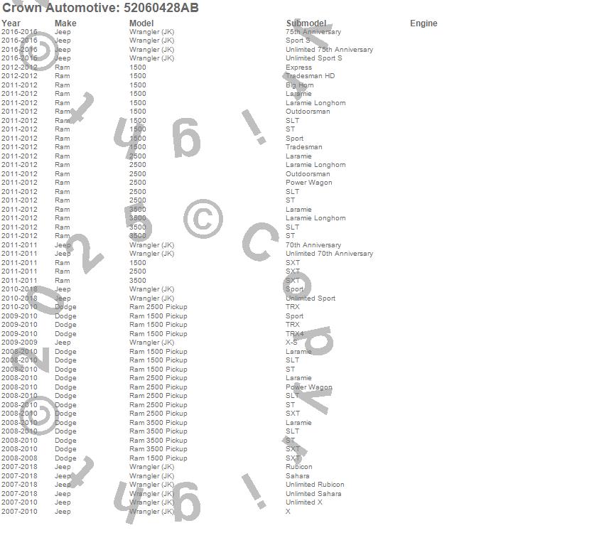 1500, 2500, 3500, Ram 1500, Ram 2500, Ram 3500, Wrangler (JK), Dodge, Jeep, Ram, 2015, 2014, 2013, 2012, 2011, 2010, 2009, 2008, 2007 more…