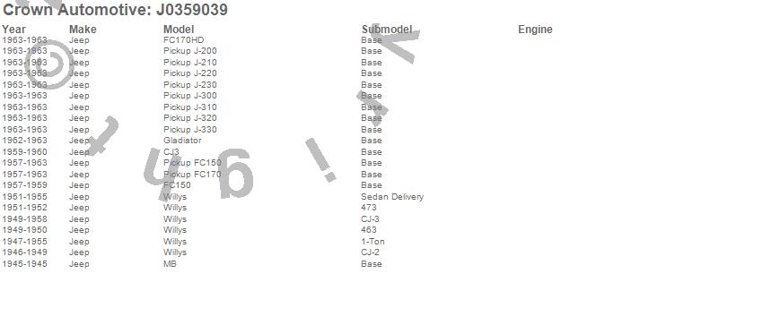 1-Ton Pickup, CJ-2A, CJ-3A, CJ-3B, CJ3, FC150, FC170, FC170HD, Gladiator, J-200, J-210, J-220, J-230, J-2500, J-300, J-310, J-320, J-330, MB, Sedan Delivery more…