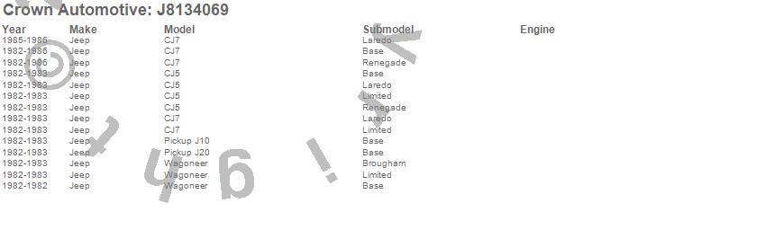 Crown Automotive is the premier manufacturer and distributor of quality replacement parts for Jeep® CJ™, Wrangler™, Cherokee™, Grand Cherokee™, Liberty™, and Commander™."From humble beginnings in 1963 in a small Boston storefront, Crown Automotive has consistently maintained its commitment to offering only quality parts and exceptional service. Today, with warehouses in Massachusetts, Georgia, Nevada, Spain, and the Czech Republic, totaling over 160,000 square feet, Crown Automotive continues to be the leader in quality replacement parts for Jeep® vehicles. With over 8,000 different parts in stock for Jeep® vehicles from 1942 on up, Crown has the largest stock of replacement parts for Jeep® vehicles, including factory-discontinued parts. In fact, many of the older Jeeps are still on (and off) the road thanks to Crown parts. The Crown line consists of axle, body, brake, clutch, cooling, driveline, electrical, engine, exhaust, fuel, steering, suspension, transmission and transfer case components. Crown Automotive also offers an exclusive line of component kits and accessory products. Because we know that Jeeps are driven harder than most other vehicles, we emphasize offering only quality parts. In fact, we test parts on Jeeps before distributing them to our dealers to insure that they meet our standards for quality. Crown also supports its entire line with a 12 month/12,000 mile warranty to insure our dealers and their customers of our commitment to offering quality parts. We know from experience that Jeep® owners would rather pay a little more for a good quality part that's backed by a strong guarantee. But we know that price is important as well. So, not only will you find Crown parts to be of exceptional quality, but you'll find them at a great price too.