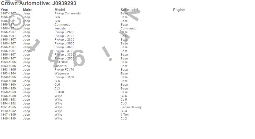 1-Ton Pickup, CJ-2A, CJ-3A, CJ-3B, CJ5, CJ6, Commando, FC150, FC170, FC170HD, Gladiator, J-2500, J-2600, J-2700, J-2800, J-3500, J-3600, J-3700, J-3800, Jeepster more…