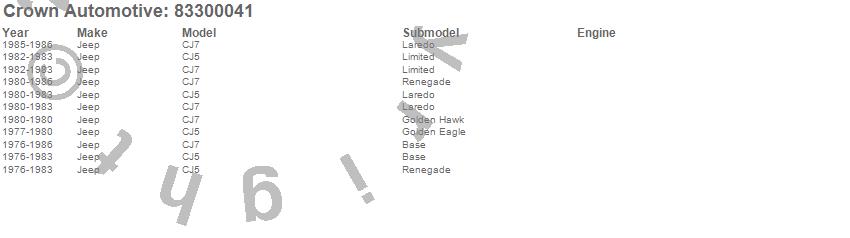 Crown Automotive is the premier manufacturer and distributor of quality replacement parts for Jeep® CJ™, Wrangler™, Cherokee™, Grand Cherokee™, Liberty™, and Commander™."From humble beginnings in 1963 in a small Boston storefront, Crown Automotive has consistently maintained its commitment to offering only quality parts and exceptional service. Today, with warehouses in Massachusetts, Georgia, Nevada, Spain, and the Czech Republic, totaling over 160,000 square feet, Crown Automotive continues to be the leader in quality replacement parts for Jeep® vehicles. With over 8,000 different parts in stock for Jeep® vehicles from 1942 on up, Crown has the largest stock of replacement parts for Jeep® vehicles, including factory-discontinued parts. In fact, many of the older Jeeps are still on (and off) the road thanks to Crown parts. The Crown line consists of axle, body, brake, clutch, cooling, driveline, electrical, engine, exhaust, fuel, steering, suspension, transmission and transfer case components. Crown Automotive also offers an exclusive line of component kits and accessory products. Because we know that Jeeps are driven harder than most other vehicles, we emphasize offering only quality parts. In fact, we test parts on Jeeps before distributing them to our dealers to insure that they meet our standards for quality. Crown also supports its entire line with a 12 month/12,000 mile warranty to insure our dealers and their customers of our commitment to offering quality parts. We know from experience that Jeep® owners would rather pay a little more for a good quality part that's backed by a strong guarantee. But we know that price is important as well. So, not only will you find Crown parts to be of exceptional quality, but you'll find them at a great price too.