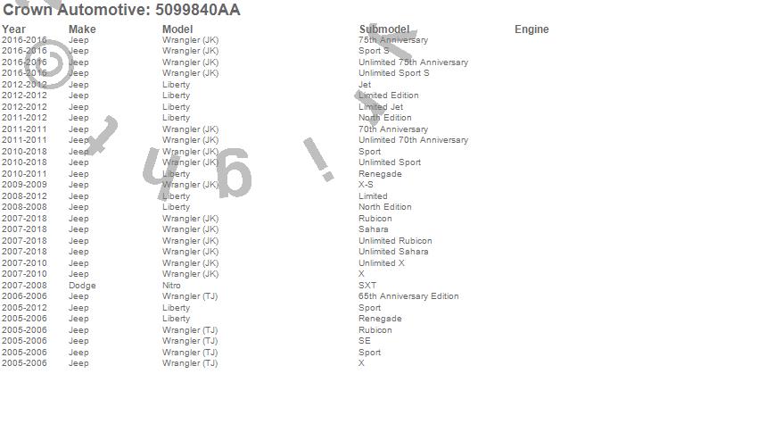 Liberty, Nitro, Wrangler (JK), Wrangler (TJ), Dodge, Jeep, 2015, 2014, 2013, 2012, 2011, 2010, 2009, 2008, 2007, 2006, 2005 more…