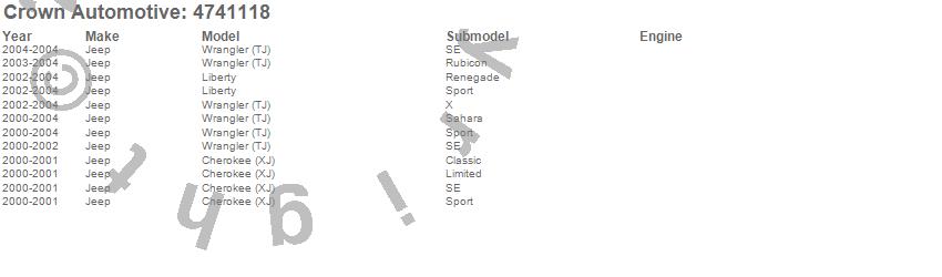Crown Automotive is the premier manufacturer and distributor of quality replacement parts for Jeep® CJ™, Wrangler™, Cherokee™, Grand Cherokee™, Liberty™, and Commander™."From humble beginnings in 1963 in a small Boston storefront, Crown Automotive has consistently maintained its commitment to offering only quality parts and exceptional service. Today, with warehouses in Massachusetts, Georgia, Nevada, Spain, and the Czech Republic, totaling over 160,000 square feet, Crown Automotive continues to be the leader in quality replacement parts for Jeep® vehicles. With over 8,000 different parts in stock for Jeep® vehicles from 1942 on up, Crown has the largest stock of replacement parts for Jeep® vehicles, including factory-discontinued parts. In fact, many of the older Jeeps are still on (and off) the road thanks to Crown parts. The Crown line consists of axle, body, brake, clutch, cooling, driveline, electrical, engine, exhaust, fuel, steering, suspension, transmission and transfer case components. Crown Automotive also offers an exclusive line of component kits and accessory products. Because we know that Jeeps are driven harder than most other vehicles, we emphasize offering only quality parts. In fact, we test parts on Jeeps before distributing them to our dealers to insure that they meet our standards for quality. Crown also supports its entire line with a 12 month/12,000 mile warranty to insure our dealers and their customers of our commitment to offering quality parts. We know from experience that Jeep® owners would rather pay a little more for a good quality part that's backed by a strong guarantee. But we know that price is important as well. So, not only will you find Crown parts to be of exceptional quality, but you'll find them at a great price too.