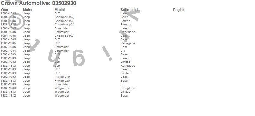 Crown Automotive is the premier manufacturer and distributor of quality replacement parts for Jeep® CJ™, Wrangler™, Cherokee™, Grand Cherokee™, Liberty™, and Commander™."From humble beginnings in 1963 in a small Boston storefront, Crown Automotive has consistently maintained its commitment to offering only quality parts and exceptional service. Today, with warehouses in Massachusetts, Georgia, Nevada, Spain, and the Czech Republic, totaling over 160,000 square feet, Crown Automotive continues to be the leader in quality replacement parts for Jeep® vehicles. With over 8,000 different parts in stock for Jeep® vehicles from 1942 on up, Crown has the largest stock of replacement parts for Jeep® vehicles, including factory-discontinued parts. In fact, many of the older Jeeps are still on (and off) the road thanks to Crown parts. The Crown line consists of axle, body, brake, clutch, cooling, driveline, electrical, engine, exhaust, fuel, steering, suspension, transmission and transfer case components. Crown Automotive also offers an exclusive line of component kits and accessory products. Because we know that Jeeps are driven harder than most other vehicles, we emphasize offering only quality parts. In fact, we test parts on Jeeps before distributing them to our dealers to insure that they meet our standards for quality. Crown also supports its entire line with a 12 month/12,000 mile warranty to insure our dealers and their customers of our commitment to offering quality parts. We know from experience that Jeep® owners would rather pay a little more for a good quality part that's backed by a strong guarantee. But we know that price is important as well. So, not only will you find Crown parts to be of exceptional quality, but you'll find them at a great price too.