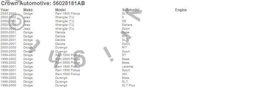 Dakota, Durango, Ram 1500, Ram 2500, Ram 3500, Wrangler (TJ), Dodge, Jeep, 2002, 2001, 2000, 1999 more…