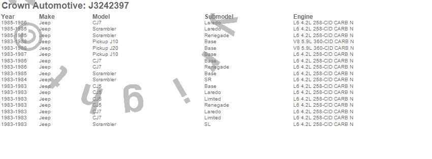 Crown Automotive is the premier manufacturer and distributor of quality replacement parts for Jeep® CJ™, Wrangler™, Cherokee™, Grand Cherokee™, Liberty™, and Commander™."From humble beginnings in 1963 in a small Boston storefront, Crown Automotive has consistently maintained its commitment to offering only quality parts and exceptional service. Today, with warehouses in Massachusetts, Georgia, Nevada, Spain, and the Czech Republic, totaling over 160,000 square feet, Crown Automotive continues to be the leader in quality replacement parts for Jeep® vehicles. With over 8,000 different parts in stock for Jeep® vehicles from 1942 on up, Crown has the largest stock of replacement parts for Jeep® vehicles, including factory-discontinued parts. In fact, many of the older Jeeps are still on (and off) the road thanks to Crown parts. The Crown line consists of axle, body, brake, clutch, cooling, driveline, electrical, engine, exhaust, fuel, steering, suspension, transmission and transfer case components. Crown Automotive also offers an exclusive line of component kits and accessory products. Because we know that Jeeps are driven harder than most other vehicles, we emphasize offering only quality parts. In fact, we test parts on Jeeps before distributing them to our dealers to insure that they meet our standards for quality. Crown also supports its entire line with a 12 month/12,000 mile warranty to insure our dealers and their customers of our commitment to offering quality parts. We know from experience that Jeep® owners would rather pay a little more for a good quality part that's backed by a strong guarantee. But we know that price is important as well. So, not only will you find Crown parts to be of exceptional quality, but you'll find them at a great price too.
