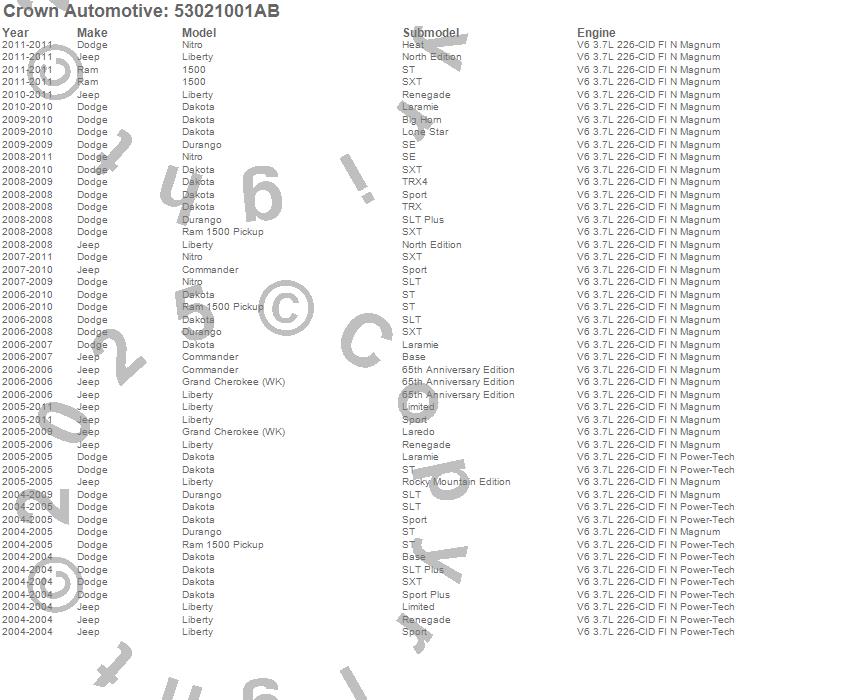 1500, Commander, Dakota, Durango, Grand Cherokee (WK), Liberty, Nitro, Ram 1500, Dodge, Jeep, Ram, 2011, 2010, 2009, 2008, 2007, 2006, 2005, 2004 more…