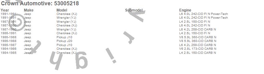 Crown Automotive is the premier manufacturer and distributor of quality replacement parts for Jeep® CJ™, Wrangler™, Cherokee™, Grand Cherokee™, Liberty™, and Commander™."From humble beginnings in 1963 in a small Boston storefront, Crown Automotive has consistently maintained its commitment to offering only quality parts and exceptional service. Today, with warehouses in Massachusetts, Georgia, Nevada, Spain, and the Czech Republic, totaling over 160,000 square feet, Crown Automotive continues to be the leader in quality replacement parts for Jeep® vehicles. With over 8,000 different parts in stock for Jeep® vehicles from 1942 on up, Crown has the largest stock of replacement parts for Jeep® vehicles, including factory-discontinued parts. In fact, many of the older Jeeps are still on (and off) the road thanks to Crown parts. The Crown line consists of axle, body, brake, clutch, cooling, driveline, electrical, engine, exhaust, fuel, steering, suspension, transmission and transfer case components. Crown Automotive also offers an exclusive line of component kits and accessory products. Because we know that Jeeps are driven harder than most other vehicles, we emphasize offering only quality parts. In fact, we test parts on Jeeps before distributing them to our dealers to insure that they meet our standards for quality. Crown also supports its entire line with a 12 month/12,000 mile warranty to insure our dealers and their customers of our commitment to offering quality parts. We know from experience that Jeep® owners would rather pay a little more for a good quality part that's backed by a strong guarantee. But we know that price is important as well. So, not only will you find Crown parts to be of exceptional quality, but you'll find them at a great price too.