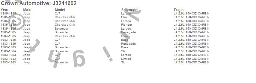 Crown Automotive is the premier manufacturer and distributor of quality replacement parts for Jeep® CJ™, Wrangler™, Cherokee™, Grand Cherokee™, Liberty™, and Commander™."From humble beginnings in 1963 in a small Boston storefront, Crown Automotive has consistently maintained its commitment to offering only quality parts and exceptional service. Today, with warehouses in Massachusetts, Georgia, Nevada, Spain, and the Czech Republic, totaling over 160,000 square feet, Crown Automotive continues to be the leader in quality replacement parts for Jeep® vehicles. With over 8,000 different parts in stock for Jeep® vehicles from 1942 on up, Crown has the largest stock of replacement parts for Jeep® vehicles, including factory-discontinued parts. In fact, many of the older Jeeps are still on (and off) the road thanks to Crown parts. The Crown line consists of axle, body, brake, clutch, cooling, driveline, electrical, engine, exhaust, fuel, steering, suspension, transmission and transfer case components. Crown Automotive also offers an exclusive line of component kits and accessory products. Because we know that Jeeps are driven harder than most other vehicles, we emphasize offering only quality parts. In fact, we test parts on Jeeps before distributing them to our dealers to insure that they meet our standards for quality. Crown also supports its entire line with a 12 month/12,000 mile warranty to insure our dealers and their customers of our commitment to offering quality parts. We know from experience that Jeep® owners would rather pay a little more for a good quality part that's backed by a strong guarantee. But we know that price is important as well. So, not only will you find Crown parts to be of exceptional quality, but you'll find them at a great price too.
