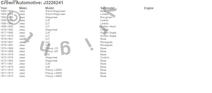 CJ5, CJ6, CJ7, Grand Wagoneer, J-2500, J-2600, J-4800, J10, J20, Wagoneer, Jeep, 1991, 1990, 1989, 1988, 1987, 1986, 1985, 1984, 1983 more…