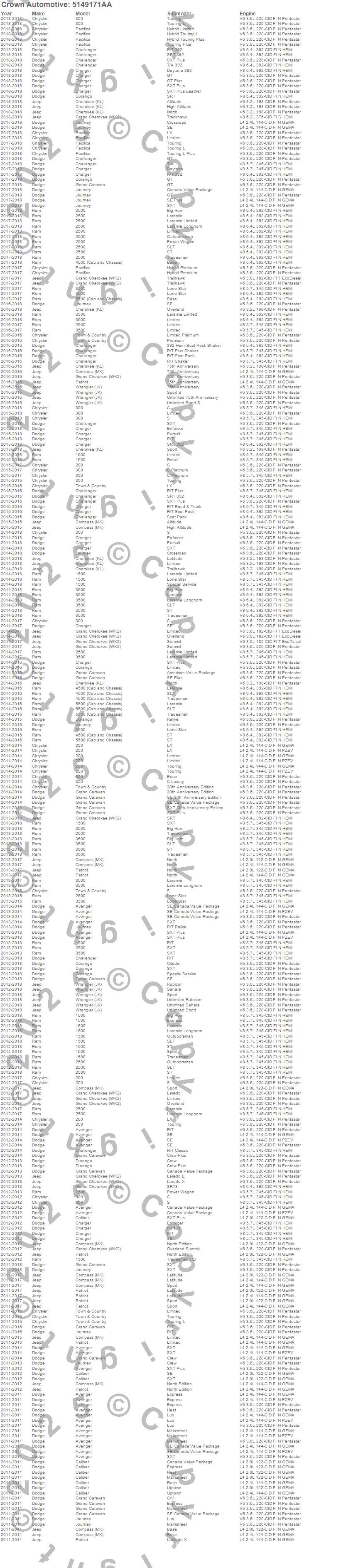 Crown Automotive Oxygen Sensor 5149171AA Features: