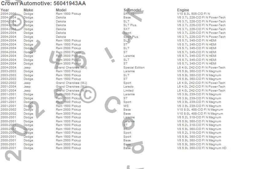 Dakota, Grand Cherokee (WJ), Ram 1500, Ram 2500, Ram 3500, Dodge, Jeep, 2006, 2005, 2004, 2003, 2002, 2001, 2000 more…