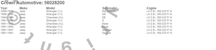 Crown Automotive is the premier manufacturer and distributor of quality replacement parts for Jeep® CJ™, Wrangler™, Cherokee™, Grand Cherokee™, Liberty™, and Commander™."From humble beginnings in 1963 in a small Boston storefront, Crown Automotive has consistently maintained its commitment to offering only quality parts and exceptional service. Today, with warehouses in Massachusetts, Georgia, Nevada, Spain, and the Czech Republic, totaling over 160,000 square feet, Crown Automotive continues to be the leader in quality replacement parts for Jeep® vehicles. With over 8,000 different parts in stock for Jeep® vehicles from 1942 on up, Crown has the largest stock of replacement parts for Jeep® vehicles, including factory-discontinued parts. In fact, many of the older Jeeps are still on (and off) the road thanks to Crown parts. The Crown line consists of axle, body, brake, clutch, cooling, driveline, electrical, engine, exhaust, fuel, steering, suspension, transmission and transfer case components. Crown Automotive also offers an exclusive line of component kits and accessory products. Because we know that Jeeps are driven harder than most other vehicles, we emphasize offering only quality parts. In fact, we test parts on Jeeps before distributing them to our dealers to insure that they meet our standards for quality. Crown also supports its entire line with a 12 month/12,000 mile warranty to insure our dealers and their customers of our commitment to offering quality parts. We know from experience that Jeep® owners would rather pay a little more for a good quality part that's backed by a strong guarantee. But we know that price is important as well. So, not only will you find Crown parts to be of exceptional quality, but you'll find them at a great price too.