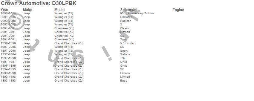 Crown Automotive is the premier manufacturer and distributor of quality replacement parts for Jeep® CJ™, Wrangler™, Cherokee™, Grand Cherokee™, Liberty™, and Commander™."From humble beginnings in 1963 in a small Boston storefront, Crown Automotive has consistently maintained its commitment to offering only quality parts and exceptional service. Today, with warehouses in Massachusetts, Georgia, Nevada, Spain, and the Czech Republic, totaling over 160,000 square feet, Crown Automotive continues to be the leader in quality replacement parts for Jeep® vehicles. With over 8,000 different parts in stock for Jeep® vehicles from 1942 on up, Crown has the largest stock of replacement parts for Jeep® vehicles, including factory-discontinued parts. In fact, many of the older Jeeps are still on (and off) the road thanks to Crown parts. The Crown line consists of axle, body, brake, clutch, cooling, driveline, electrical, engine, exhaust, fuel, steering, suspension, transmission and transfer case components. Crown Automotive also offers an exclusive line of component kits and accessory products. Because we know that Jeeps are driven harder than most other vehicles, we emphasize offering only quality parts. In fact, we test parts on Jeeps before distributing them to our dealers to insure that they meet our standards for quality. Crown also supports its entire line with a 12 month/12,000 mile warranty to insure our dealers and their customers of our commitment to offering quality parts. We know from experience that Jeep® owners would rather pay a little more for a good quality part that's backed by a strong guarantee. But we know that price is important as well. So, not only will you find Crown parts to be of exceptional quality, but you'll find them at a great price too.