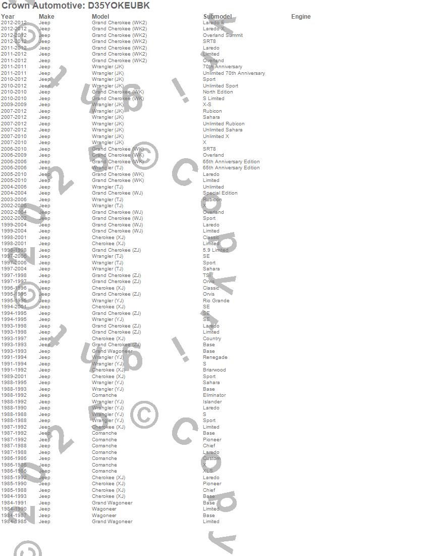 Crown Automotive Pinion Yoke Kit D35YOKEUBK Features: