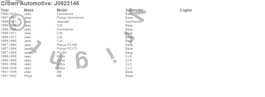 Crown Automotive is the premier manufacturer and distributor of quality replacement parts for Jeep® CJ™, Wrangler™, Cherokee™, Grand Cherokee™, Liberty™, and Commander™."From humble beginnings in 1963 in a small Boston storefront, Crown Automotive has consistently maintained its commitment to offering only quality parts and exceptional service. Today, with warehouses in Massachusetts, Georgia, Nevada, Spain, and the Czech Republic, totaling over 160,000 square feet, Crown Automotive continues to be the leader in quality replacement parts for Jeep® vehicles. With over 8,000 different parts in stock for Jeep® vehicles from 1942 on up, Crown has the largest stock of replacement parts for Jeep® vehicles, including factory-discontinued parts. In fact, many of the older Jeeps are still on (and off) the road thanks to Crown parts. The Crown line consists of axle, body, brake, clutch, cooling, driveline, electrical, engine, exhaust, fuel, steering, suspension, transmission and transfer case components. Crown Automotive also offers an exclusive line of component kits and accessory products. Because we know that Jeeps are driven harder than most other vehicles, we emphasize offering only quality parts. In fact, we test parts on Jeeps before distributing them to our dealers to insure that they meet our standards for quality. Crown also supports its entire line with a 12 month/12,000 mile warranty to insure our dealers and their customers of our commitment to offering quality parts. We know from experience that Jeep® owners would rather pay a little more for a good quality part that's backed by a strong guarantee. But we know that price is important as well. So, not only will you find Crown parts to be of exceptional quality, but you'll find them at a great price too.