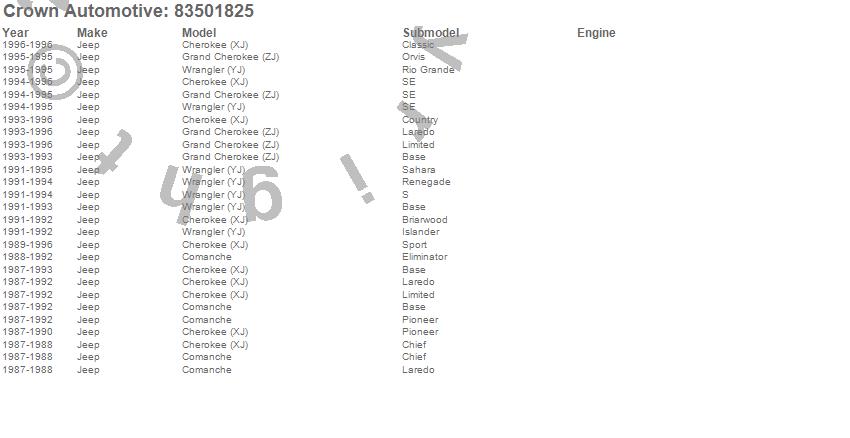Cherokee (XJ), Comanche, Grand Cherokee (ZJ), Wrangler (YJ), Jeep, 1996, 1995, 1994, 1993, 1992, 1991, 1990, 1989, 1988, 1987 more…