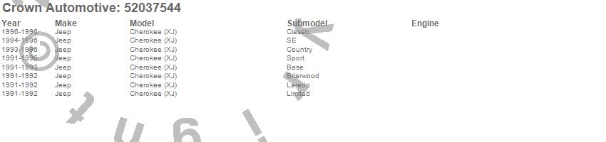 Crown Automotive is the premier manufacturer and distributor of quality replacement parts for Jeep® CJ™, Wrangler™, Cherokee™, Grand Cherokee™, Liberty™, and Commander™."From humble beginnings in 1963 in a small Boston storefront, Crown Automotive has consistently maintained its commitment to offering only quality parts and exceptional service. Today, with warehouses in Massachusetts, Georgia, Nevada, Spain, and the Czech Republic, totaling over 160,000 square feet, Crown Automotive continues to be the leader in quality replacement parts for Jeep® vehicles. With over 8,000 different parts in stock for Jeep® vehicles from 1942 on up, Crown has the largest stock of replacement parts for Jeep® vehicles, including factory-discontinued parts. In fact, many of the older Jeeps are still on (and off) the road thanks to Crown parts. The Crown line consists of axle, body, brake, clutch, cooling, driveline, electrical, engine, exhaust, fuel, steering, suspension, transmission and transfer case components. Crown Automotive also offers an exclusive line of component kits and accessory products. Because we know that Jeeps are driven harder than most other vehicles, we emphasize offering only quality parts. In fact, we test parts on Jeeps before distributing them to our dealers to insure that they meet our standards for quality. Crown also supports its entire line with a 12 month/12,000 mile warranty to insure our dealers and their customers of our commitment to offering quality parts. We know from experience that Jeep® owners would rather pay a little more for a good quality part that's backed by a strong guarantee. But we know that price is important as well. So, not only will you find Crown parts to be of exceptional quality, but you'll find them at a great price too.