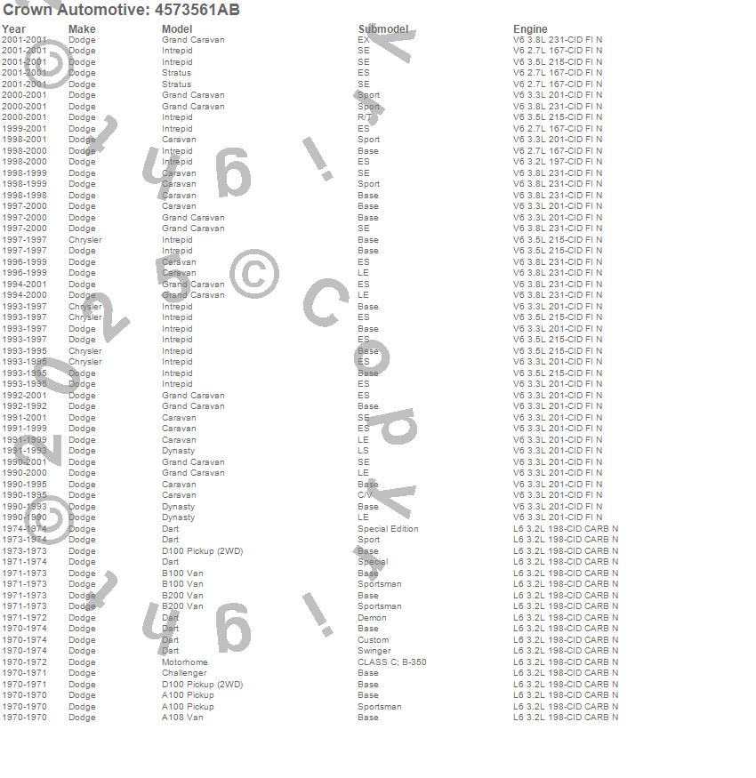 A100 Truck, A100 Van, A108 Van, B100 Van, B200 Van, Caravan, Challenger, D100 Pickup, Dart, Dynasty, Grand Caravan, Intrepid, Motorhome, Stratus, Dodge, 2001, 2000, 1999, 1998, 1997 more…