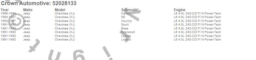 Crown Automotive is the premier manufacturer and distributor of quality replacement parts for Jeep® CJ™, Wrangler™, Cherokee™, Grand Cherokee™, Liberty™, and Commander™."From humble beginnings in 1963 in a small Boston storefront, Crown Automotive has consistently maintained its commitment to offering only quality parts and exceptional service. Today, with warehouses in Massachusetts, Georgia, Nevada, Spain, and the Czech Republic, totaling over 160,000 square feet, Crown Automotive continues to be the leader in quality replacement parts for Jeep® vehicles. With over 8,000 different parts in stock for Jeep® vehicles from 1942 on up, Crown has the largest stock of replacement parts for Jeep® vehicles, including factory-discontinued parts. In fact, many of the older Jeeps are still on (and off) the road thanks to Crown parts. The Crown line consists of axle, body, brake, clutch, cooling, driveline, electrical, engine, exhaust, fuel, steering, suspension, transmission and transfer case components. Crown Automotive also offers an exclusive line of component kits and accessory products. Because we know that Jeeps are driven harder than most other vehicles, we emphasize offering only quality parts. In fact, we test parts on Jeeps before distributing them to our dealers to insure that they meet our standards for quality. Crown also supports its entire line with a 12 month/12,000 mile warranty to insure our dealers and their customers of our commitment to offering quality parts. We know from experience that Jeep® owners would rather pay a little more for a good quality part that's backed by a strong guarantee. But we know that price is important as well. So, not only will you find Crown parts to be of exceptional quality, but you'll find them at a great price too.