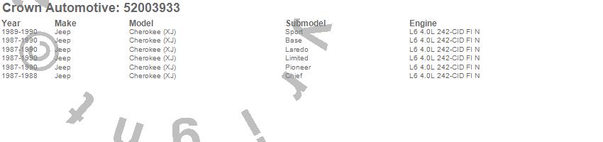 Crown Automotive is the premier manufacturer and distributor of quality replacement parts for Jeep® CJ™, Wrangler™, Cherokee™, Grand Cherokee™, Liberty™, and Commander™."From humble beginnings in 1963 in a small Boston storefront, Crown Automotive has consistently maintained its commitment to offering only quality parts and exceptional service. Today, with warehouses in Massachusetts, Georgia, Nevada, Spain, and the Czech Republic, totaling over 160,000 square feet, Crown Automotive continues to be the leader in quality replacement parts for Jeep® vehicles. With over 8,000 different parts in stock for Jeep® vehicles from 1942 on up, Crown has the largest stock of replacement parts for Jeep® vehicles, including factory-discontinued parts. In fact, many of the older Jeeps are still on (and off) the road thanks to Crown parts. The Crown line consists of axle, body, brake, clutch, cooling, driveline, electrical, engine, exhaust, fuel, steering, suspension, transmission and transfer case components. Crown Automotive also offers an exclusive line of component kits and accessory products. Because we know that Jeeps are driven harder than most other vehicles, we emphasize offering only quality parts. In fact, we test parts on Jeeps before distributing them to our dealers to insure that they meet our standards for quality. Crown also supports its entire line with a 12 month/12,000 mile warranty to insure our dealers and their customers of our commitment to offering quality parts. We know from experience that Jeep® owners would rather pay a little more for a good quality part that's backed by a strong guarantee. But we know that price is important as well. So, not only will you find Crown parts to be of exceptional quality, but you'll find them at a great price too.