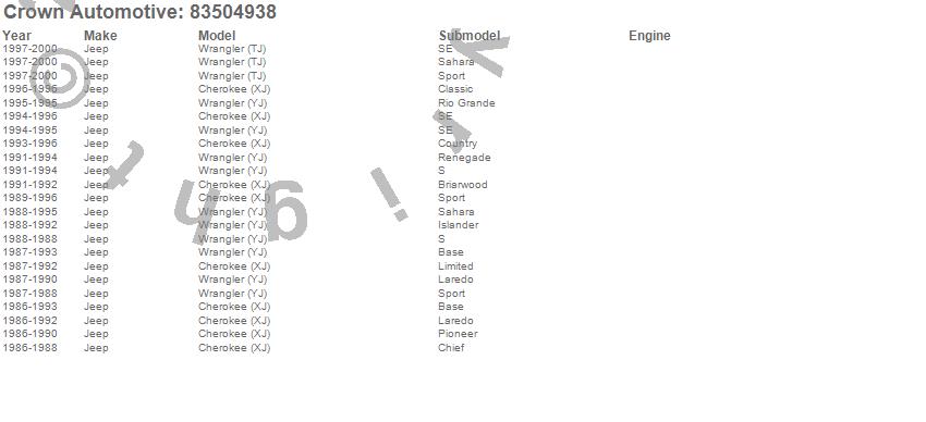 Crown Automotive is the premier manufacturer and distributor of quality replacement parts for Jeep® CJ™, Wrangler™, Cherokee™, Grand Cherokee™, Liberty™, and Commander™."From humble beginnings in 1963 in a small Boston storefront, Crown Automotive has consistently maintained its commitment to offering only quality parts and exceptional service. Today, with warehouses in Massachusetts, Georgia, Nevada, Spain, and the Czech Republic, totaling over 160,000 square feet, Crown Automotive continues to be the leader in quality replacement parts for Jeep® vehicles. With over 8,000 different parts in stock for Jeep® vehicles from 1942 on up, Crown has the largest stock of replacement parts for Jeep® vehicles, including factory-discontinued parts. In fact, many of the older Jeeps are still on (and off) the road thanks to Crown parts. The Crown line consists of axle, body, brake, clutch, cooling, driveline, electrical, engine, exhaust, fuel, steering, suspension, transmission and transfer case components. Crown Automotive also offers an exclusive line of component kits and accessory products. Because we know that Jeeps are driven harder than most other vehicles, we emphasize offering only quality parts. In fact, we test parts on Jeeps before distributing them to our dealers to insure that they meet our standards for quality. Crown also supports its entire line with a 12 month/12,000 mile warranty to insure our dealers and their customers of our commitment to offering quality parts. We know from experience that Jeep® owners would rather pay a little more for a good quality part that's backed by a strong guarantee. But we know that price is important as well. So, not only will you find Crown parts to be of exceptional quality, but you'll find them at a great price too.