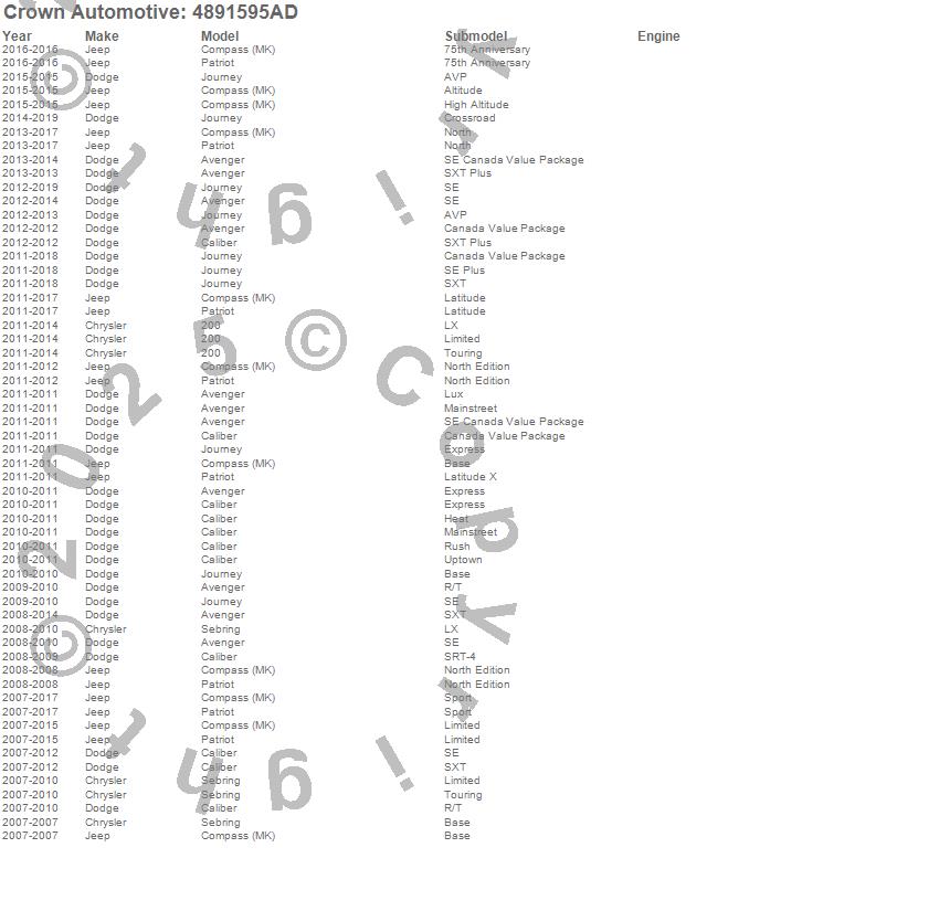 200, Avenger, Caliber, Compass, Journey, Patriot, Sebring, Chrysler, Dodge, Jeep, 2015, 2014, 2013, 2012, 2011, 2010, 2009, 2008, 2007 more…