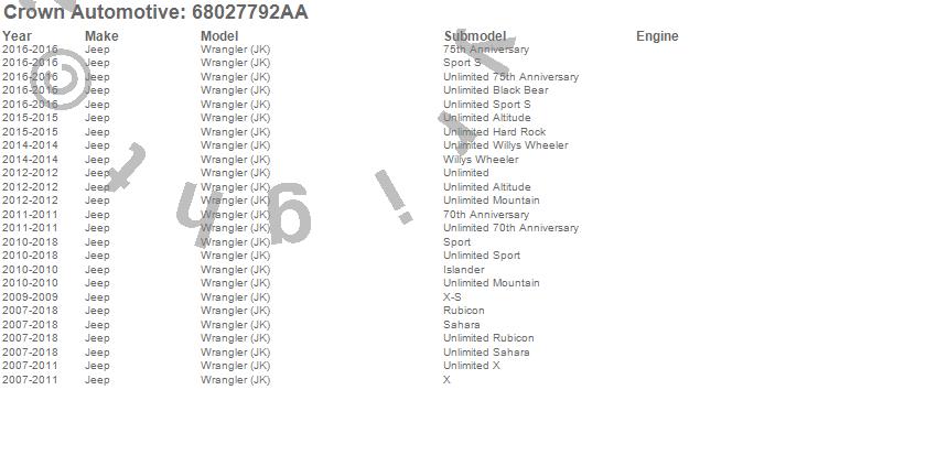 Wrangler (JK), Jeep, 2016, 2015, 2014, 2013, 2012, 2011, 2010, 2009, 2008, 2007 more…