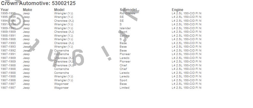 Crown Automotive is the premier manufacturer and distributor of quality replacement parts for Jeep® CJ™, Wrangler™, Cherokee™, Grand Cherokee™, Liberty™, and Commander™."From humble beginnings in 1963 in a small Boston storefront, Crown Automotive has consistently maintained its commitment to offering only quality parts and exceptional service. Today, with warehouses in Massachusetts, Georgia, Nevada, Spain, and the Czech Republic, totaling over 160,000 square feet, Crown Automotive continues to be the leader in quality replacement parts for Jeep® vehicles. With over 8,000 different parts in stock for Jeep® vehicles from 1942 on up, Crown has the largest stock of replacement parts for Jeep® vehicles, including factory-discontinued parts. In fact, many of the older Jeeps are still on (and off) the road thanks to Crown parts. The Crown line consists of axle, body, brake, clutch, cooling, driveline, electrical, engine, exhaust, fuel, steering, suspension, transmission and transfer case components. Crown Automotive also offers an exclusive line of component kits and accessory products. Because we know that Jeeps are driven harder than most other vehicles, we emphasize offering only quality parts. In fact, we test parts on Jeeps before distributing them to our dealers to insure that they meet our standards for quality. Crown also supports its entire line with a 12 month/12,000 mile warranty to insure our dealers and their customers of our commitment to offering quality parts. We know from experience that Jeep® owners would rather pay a little more for a good quality part that's backed by a strong guarantee. But we know that price is important as well. So, not only will you find Crown parts to be of exceptional quality, but you'll find them at a great price too.