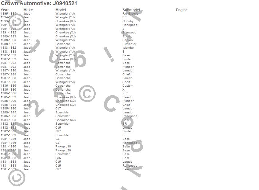 Cherokee (XJ), CJ5, CJ7, Comanche, J10, J20, Scrambler, Wrangler (YJ), Jeep, 1995, 1994, 1993, 1992, 1991, 1990, 1989, 1988, 1987, 1986, 1985 more…
