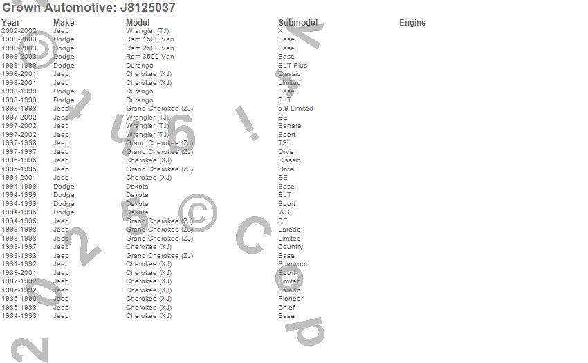 Cherokee (XJ), Dakota, Durango, Grand Cherokee (ZJ), Ram 1500 Van, Ram 2500 Van, Ram 3500 Van, Wrangler (TJ), Dodge, Jeep, 2003, 2002, 2001, 2000, 1999, 1998, 1997, 1996, 1995, 1994 more…