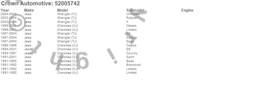 Cherokee (XJ), Wrangler (LJ), Wrangler (TJ), Jeep, 2004, 2003, 2002, 2001, 2000, 1999, 1998, 1997, 1996, 1995, 1994, 1993, 1992, 1991 more…