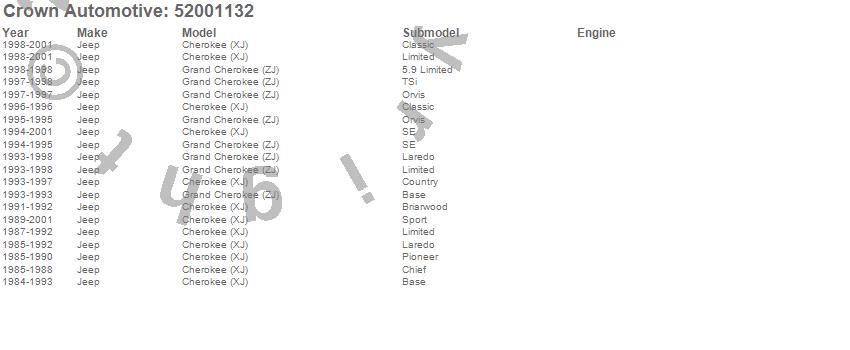 Cherokee (XJ), Grand Cherokee (ZJ), Jeep, 2001, 2000, 1999, 1998, 1997, 1996, 1995, 1994, 1993, 1992, 1991, 1990, 1989, 1988, 1987, 1986, 1985 more…