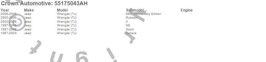 Crown Automotive is the premier manufacturer and distributor of quality replacement parts for Jeep® CJ™, Wrangler™, Cherokee™, Grand Cherokee™, Liberty™, and Commander™."From humble beginnings in 1963 in a small Boston storefront, Crown Automotive has consistently maintained its commitment to offering only quality parts and exceptional service. Today, with warehouses in Massachusetts, Georgia, Nevada, Spain, and the Czech Republic, totaling over 160,000 square feet, Crown Automotive continues to be the leader in quality replacement parts for Jeep® vehicles. With over 8,000 different parts in stock for Jeep® vehicles from 1942 on up, Crown has the largest stock of replacement parts for Jeep® vehicles, including factory-discontinued parts. In fact, many of the older Jeeps are still on (and off) the road thanks to Crown parts. The Crown line consists of axle, body, brake, clutch, cooling, driveline, electrical, engine, exhaust, fuel, steering, suspension, transmission and transfer case components. Crown Automotive also offers an exclusive line of component kits and accessory products. Because we know that Jeeps are driven harder than most other vehicles, we emphasize offering only quality parts. In fact, we test parts on Jeeps before distributing them to our dealers to insure that they meet our standards for quality. Crown also supports its entire line with a 12 month/12,000 mile warranty to insure our dealers and their customers of our commitment to offering quality parts. We know from experience that Jeep® owners would rather pay a little more for a good quality part that's backed by a strong guarantee. But we know that price is important as well. So, not only will you find Crown parts to be of exceptional quality, but you'll find them at a great price too.