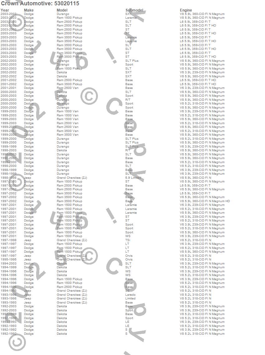 Dakota, Durango, Grand Cherokee (ZJ), Ram 1500, Ram 1500 Van, Ram 2500, Ram 2500 Van, Ram 3500, Ram 3500 Van, Dodge, Jeep, 2003, 2002, 2001, 2000, 1999, 1998, 1997, 1996, 1995 more…