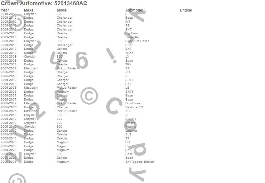 300, Challenger, Charger, Dakota, Magnum, Raider, Chrysler, Dodge, Mitsubishi, 2010, 2009, 2008, 2007, 2006, 2005 more…