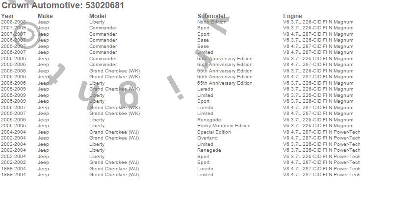 Commander, Grand Cherokee (WJ), Grand Cherokee (WK), Liberty, Jeep, 2009, 2008, 2007, 2006, 2005, 2004, 2003, 2002, 2001, 2000, 1999 more…