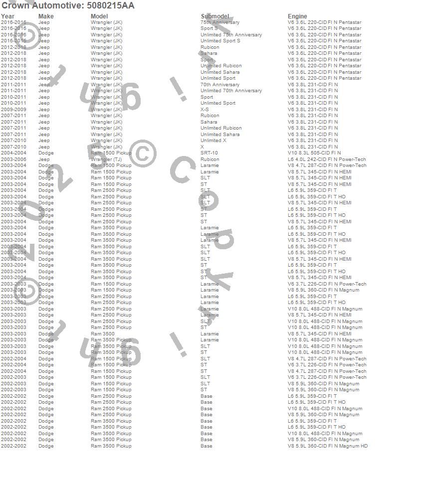 Crown Automotive is the premier manufacturer and distributor of quality replacement parts for Jeep® CJ™, Wrangler™, Cherokee™, Grand Cherokee™, Liberty™, and Commander™."From humble beginnings in 1963 in a small Boston storefront, Crown Automotive has consistently maintained its commitment to offering only quality parts and exceptional service. Today, with warehouses in Massachusetts, Georgia, Nevada, Spain, and the Czech Republic, totaling over 160,000 square feet, Crown Automotive continues to be the leader in quality replacement parts for Jeep® vehicles. With over 8,000 different parts in stock for Jeep® vehicles from 1942 on up, Crown has the largest stock of replacement parts for Jeep® vehicles, including factory-discontinued parts. In fact, many of the older Jeeps are still on (and off) the road thanks to Crown parts. The Crown line consists of axle, body, brake, clutch, cooling, driveline, electrical, engine, exhaust, fuel, steering, suspension, transmission and transfer case components. Crown Automotive also offers an exclusive line of component kits and accessory products. Because we know that Jeeps are driven harder than most other vehicles, we emphasize offering only quality parts. In fact, we test parts on Jeeps before distributing them to our dealers to insure that they meet our standards for quality. Crown also supports its entire line with a 12 month/12,000 mile warranty to insure our dealers and their customers of our commitment to offering quality parts. We know from experience that Jeep® owners would rather pay a little more for a good quality part that's backed by a strong guarantee. But we know that price is important as well. So, not only will you find Crown parts to be of exceptional quality, but you'll find them at a great price too.