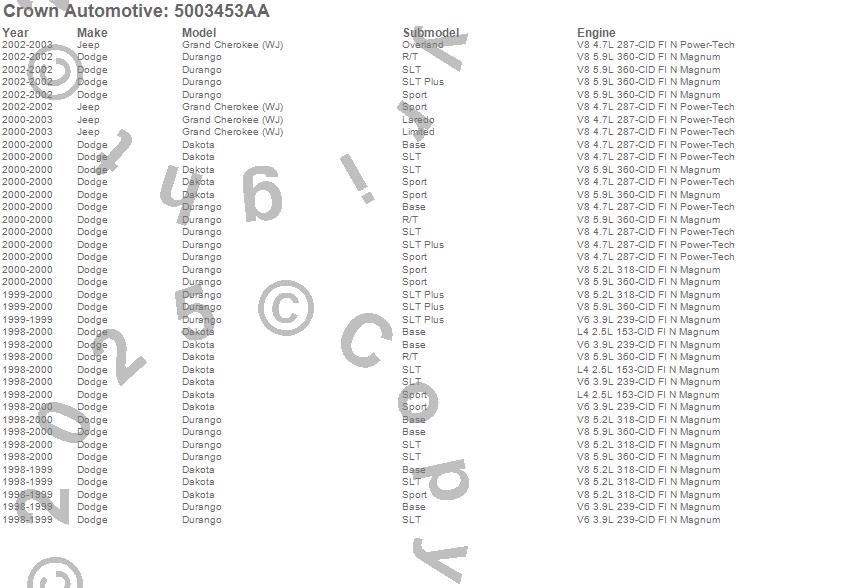 Dakota, Durango, Grand Cherokee (WJ), Dodge, Jeep, 2003, 2002, 2001, 2000, 1999, 1998 more…
