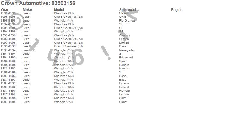 Cherokee (XJ), Grand Cherokee (ZJ), Wrangler (YJ), Jeep, 1996, 1995, 1994, 1993, 1992, 1991, 1990, 1989, 1988, 1987 more…