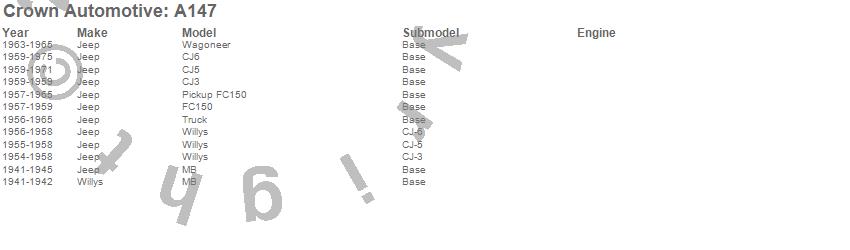 Crown Automotive is the premier manufacturer and distributor of quality replacement parts for Jeep® CJ™, Wrangler™, Cherokee™, Grand Cherokee™, Liberty™, and Commander™."From humble beginnings in 1963 in a small Boston storefront, Crown Automotive has consistently maintained its commitment to offering only quality parts and exceptional service. Today, with warehouses in Massachusetts, Georgia, Nevada, Spain, and the Czech Republic, totaling over 160,000 square feet, Crown Automotive continues to be the leader in quality replacement parts for Jeep® vehicles. With over 8,000 different parts in stock for Jeep® vehicles from 1942 on up, Crown has the largest stock of replacement parts for Jeep® vehicles, including factory-discontinued parts. In fact, many of the older Jeeps are still on (and off) the road thanks to Crown parts. The Crown line consists of axle, body, brake, clutch, cooling, driveline, electrical, engine, exhaust, fuel, steering, suspension, transmission and transfer case components. Crown Automotive also offers an exclusive line of component kits and accessory products. Because we know that Jeeps are driven harder than most other vehicles, we emphasize offering only quality parts. In fact, we test parts on Jeeps before distributing them to our dealers to insure that they meet our standards for quality. Crown also supports its entire line with a 12 month/12,000 mile warranty to insure our dealers and their customers of our commitment to offering quality parts. We know from experience that Jeep® owners would rather pay a little more for a good quality part that's backed by a strong guarantee. But we know that price is important as well. So, not only will you find Crown parts to be of exceptional quality, but you'll find them at a great price too.