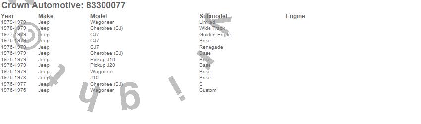 Crown Automotive is the premier manufacturer and distributor of quality replacement parts for Jeep® CJ™, Wrangler™, Cherokee™, Grand Cherokee™, Liberty™, and Commander™."From humble beginnings in 1963 in a small Boston storefront, Crown Automotive has consistently maintained its commitment to offering only quality parts and exceptional service. Today, with warehouses in Massachusetts, Georgia, Nevada, Spain, and the Czech Republic, totaling over 160,000 square feet, Crown Automotive continues to be the leader in quality replacement parts for Jeep® vehicles. With over 8,000 different parts in stock for Jeep® vehicles from 1942 on up, Crown has the largest stock of replacement parts for Jeep® vehicles, including factory-discontinued parts. In fact, many of the older Jeeps are still on (and off) the road thanks to Crown parts. The Crown line consists of axle, body, brake, clutch, cooling, driveline, electrical, engine, exhaust, fuel, steering, suspension, transmission and transfer case components. Crown Automotive also offers an exclusive line of component kits and accessory products. Because we know that Jeeps are driven harder than most other vehicles, we emphasize offering only quality parts. In fact, we test parts on Jeeps before distributing them to our dealers to insure that they meet our standards for quality. Crown also supports its entire line with a 12 month/12,000 mile warranty to insure our dealers and their customers of our commitment to offering quality parts. We know from experience that Jeep® owners would rather pay a little more for a good quality part that's backed by a strong guarantee. But we know that price is important as well. So, not only will you find Crown parts to be of exceptional quality, but you'll find them at a great price too.